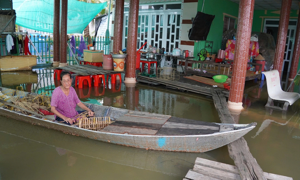 Cách đó 200 km, cùng ngày ruộng anh Trung ngập, gia đình bà Trần Thị Hãnh, 62 tuổi, phải sống “màn trời chiếu đất” trên ghe chờ nước rút, sau khi triều cường làm vỡ đê bao khiến nhà cửa và một ha vườn bưởi trên cồn Thanh Long (xã Quới Thiện, Vĩnh Long) ngập sâu hơn 1,5 m.